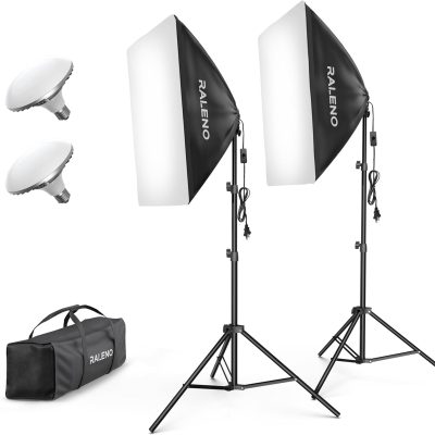 RALENO Softbox Lighting Kit, 20X28-Inch Softbox Photography Lighting with LED Bulbs(50W | 5500K | TLCI≥97), Streaming Lighting for Video Rcording Photoes Portraits YouTube | Model: PS40